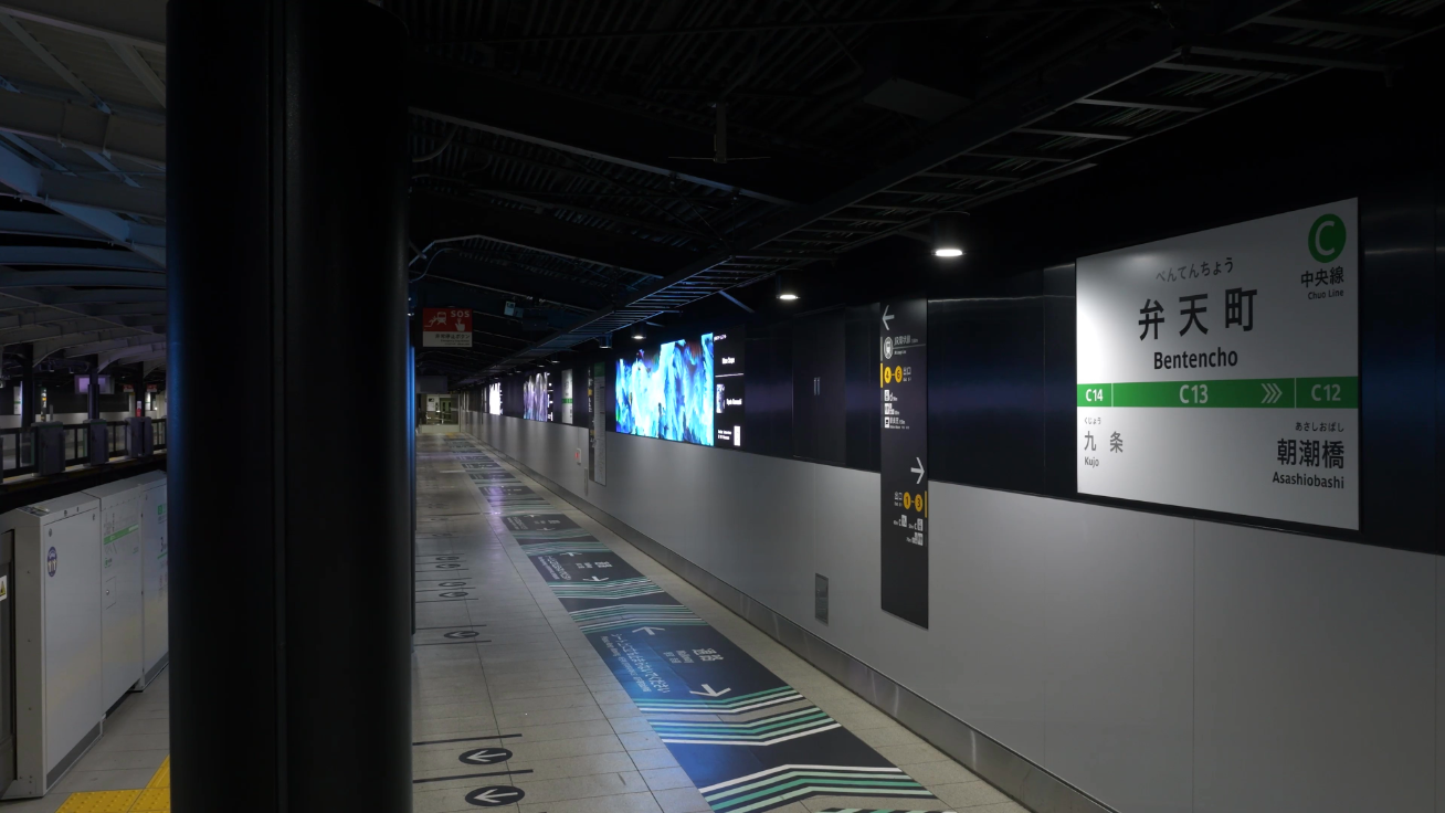 25年4月から運用開始する弁天町駅の上りと下りに幅6m 高さ1mのLEDビジョンを10面納入しました。